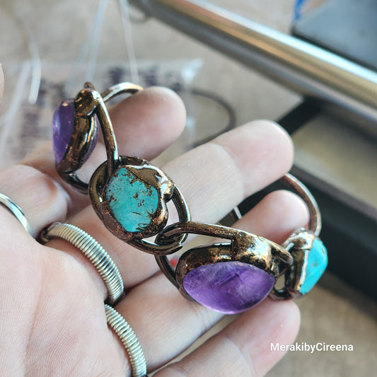 Kambaba Jasper & Amethyst Woven Pendant, Antiqued Copper