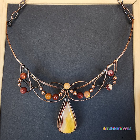Misty Moon Designs - Mookite, sesame jasper, and gold feather lariat