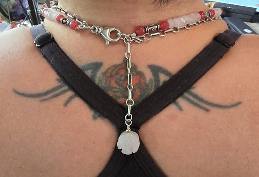 Rose & Strawberry Quartz Sterling Silver Handcrafted Vintage Double Necklace w/ Rose Quartz and Silver charms
