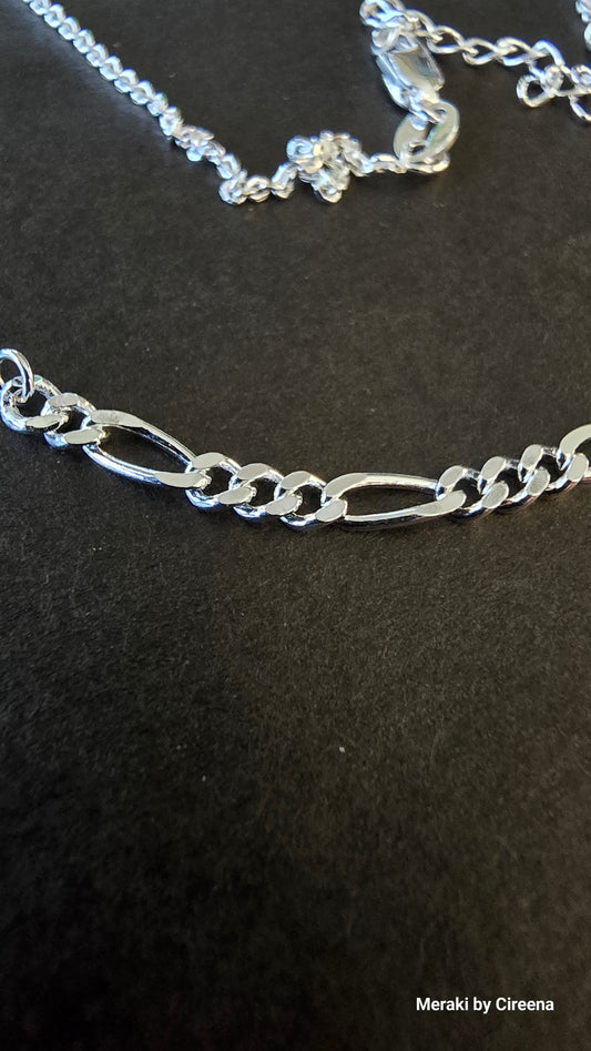 Sterling Silver Cable with Figaro Chain - 18" - 20"