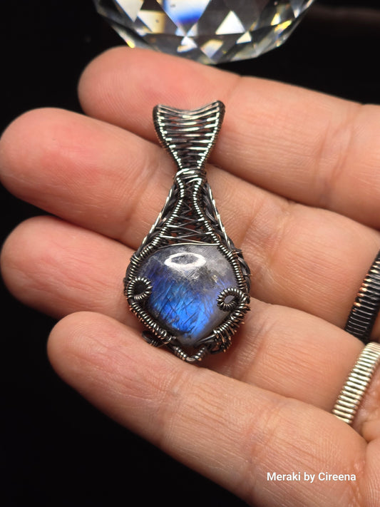 Ghost - Rainbow Moonstone in Blackened Sterling Silver