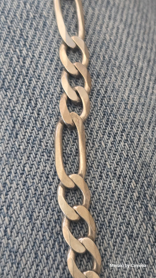 22" x 7mm Heavy Solid Sterling Silver Figaro Link Necklace, Italy
