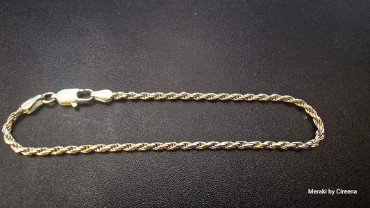 Vintage Italian 925 Sterling Silver 2mm Rope 7" Bracelet