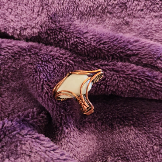 Anillo de cobre envejecido con escolecita en forma de lágrima blanca, talla 5,5