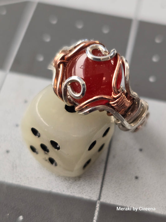 Red Garnet mixed metals Ring, Size 8, Antiqued